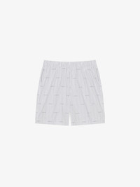 - GIVENCHY shorts in cotton with printed stripes. - GIVENCHY signatures embroidered all over. - Two raglan pockets on the sides. - Drawstring closing.