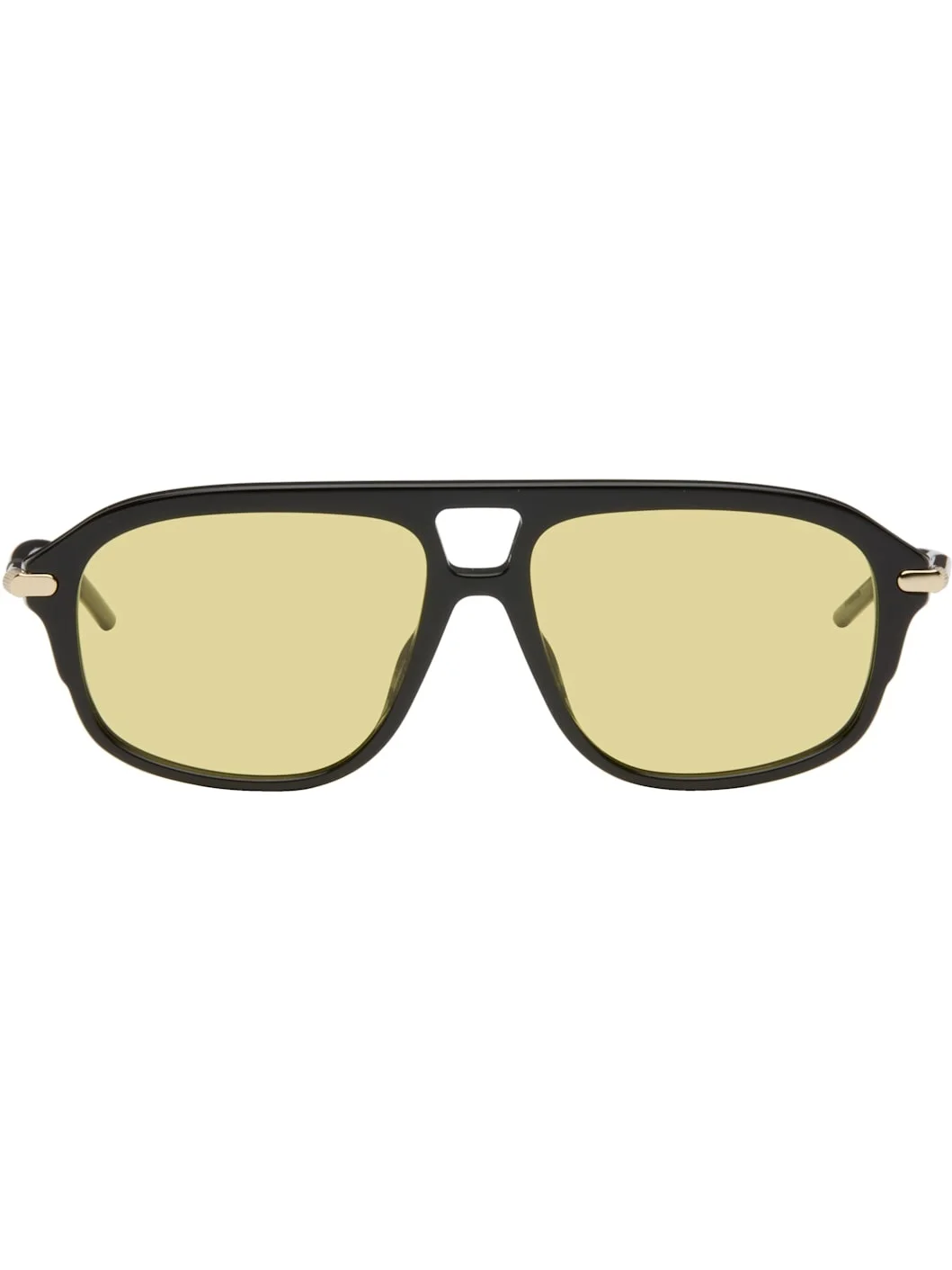 Aviator-style acetate- and metal-frame sunglasses. · Yellow lenses · Double bridge · Integrated nose pads · Logo engraved at temples · Acetate temple tips · Includes pouch · Size: 57.15 145 Supplier color: Shiny black/Rovie Acetate, metal. Made in Italy 252278M134016