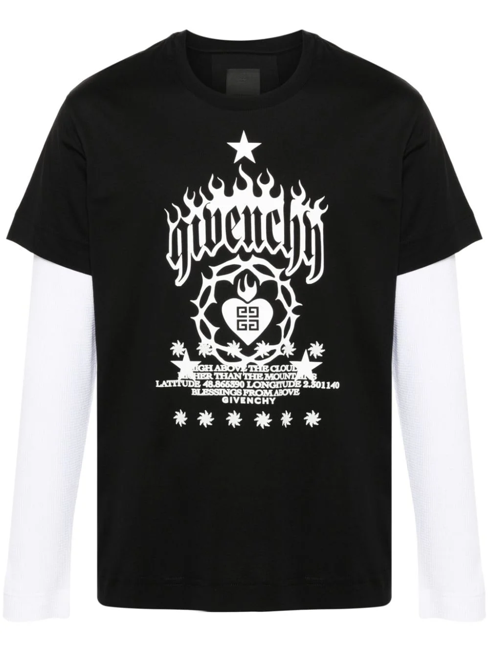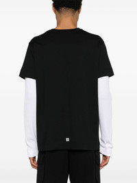 layered-sleeve T-shirt Givenchy's love for logomania is apparent on this long-sleeve T-shirt from SS24. Crafted from black and white cotton, it's emblazoned with the brand's logo at the front. Highlights - Black/white - Cotton - Lightweight jersey - Crew neck - Logo and graphic print to the front - Long knitted sleeves - Short-sleeve overlay - Signature 4g print to the rear - Unlined - Straight hem Imported Composition Cotton 100% SIZE & FIT Model measurements Height 6 ft 2 in(1.89 m) Bust/Chest 36.22 in(92 cm) Hips 35.82 in(91 cm) Waist 28.54 in(72.5 cm) FittingInformation Designed for a relaxed fit, this piece allows for comfort and movement when worn Made from a midweight non-stretch fabric, this piece offers minimal elasticity when worn This piece fits true to size – take your usual size