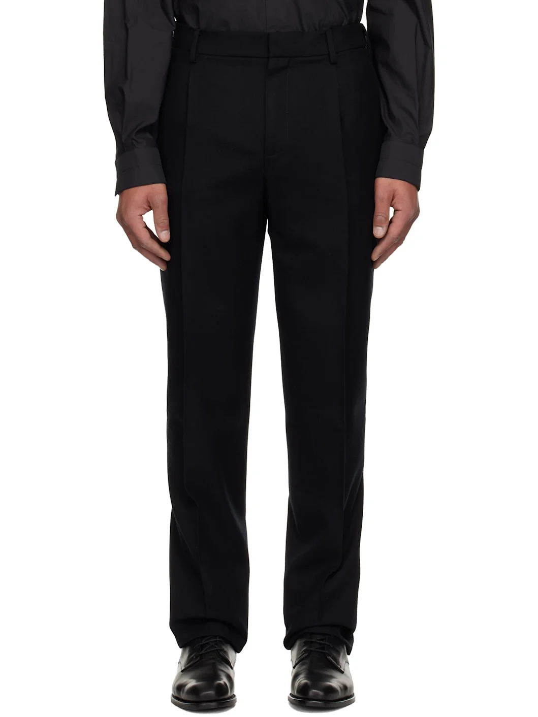 Wool flannel trousers. · Belt loops · Partially elasticized waistband · Four-pocket styling · Zip fly · Pleats at front · Creased legs · Partial satin lining Supplier color: Black Body: 100% wool. Lining: 60% acetate, 40% viscose. Made in Italy 252278M191004