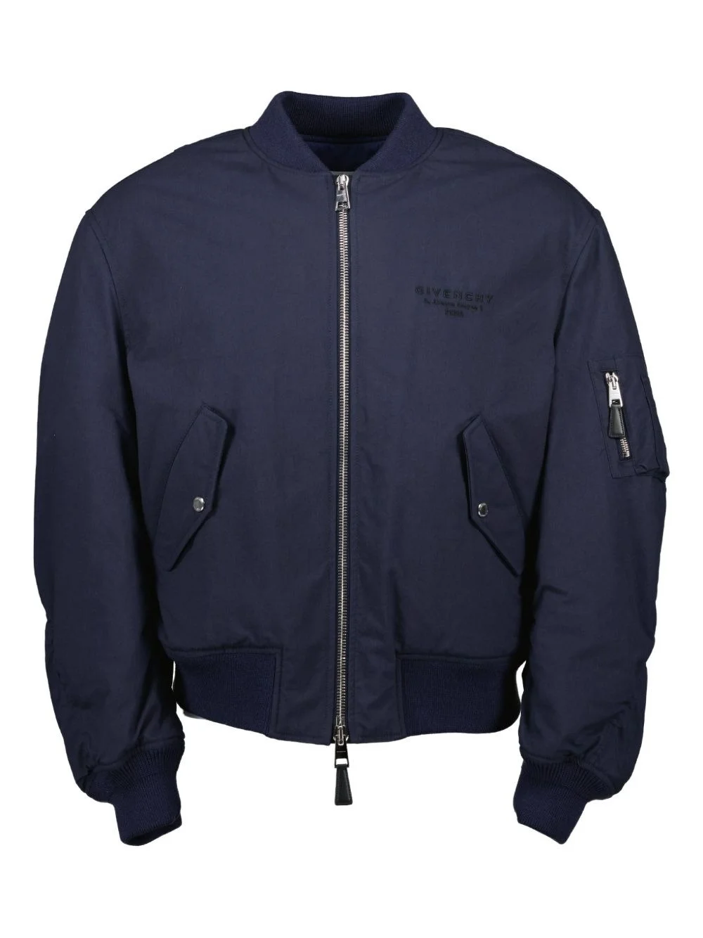 logo-detail bomber jacket Highlights - Navy blue - Logo embroidery - Zip fastening - Ribbed cuffs - Zipped sleeve pocket Imported Composition Cotton 51%, Polyamide 49% Washing instructions Read Manufacturer Guidelines