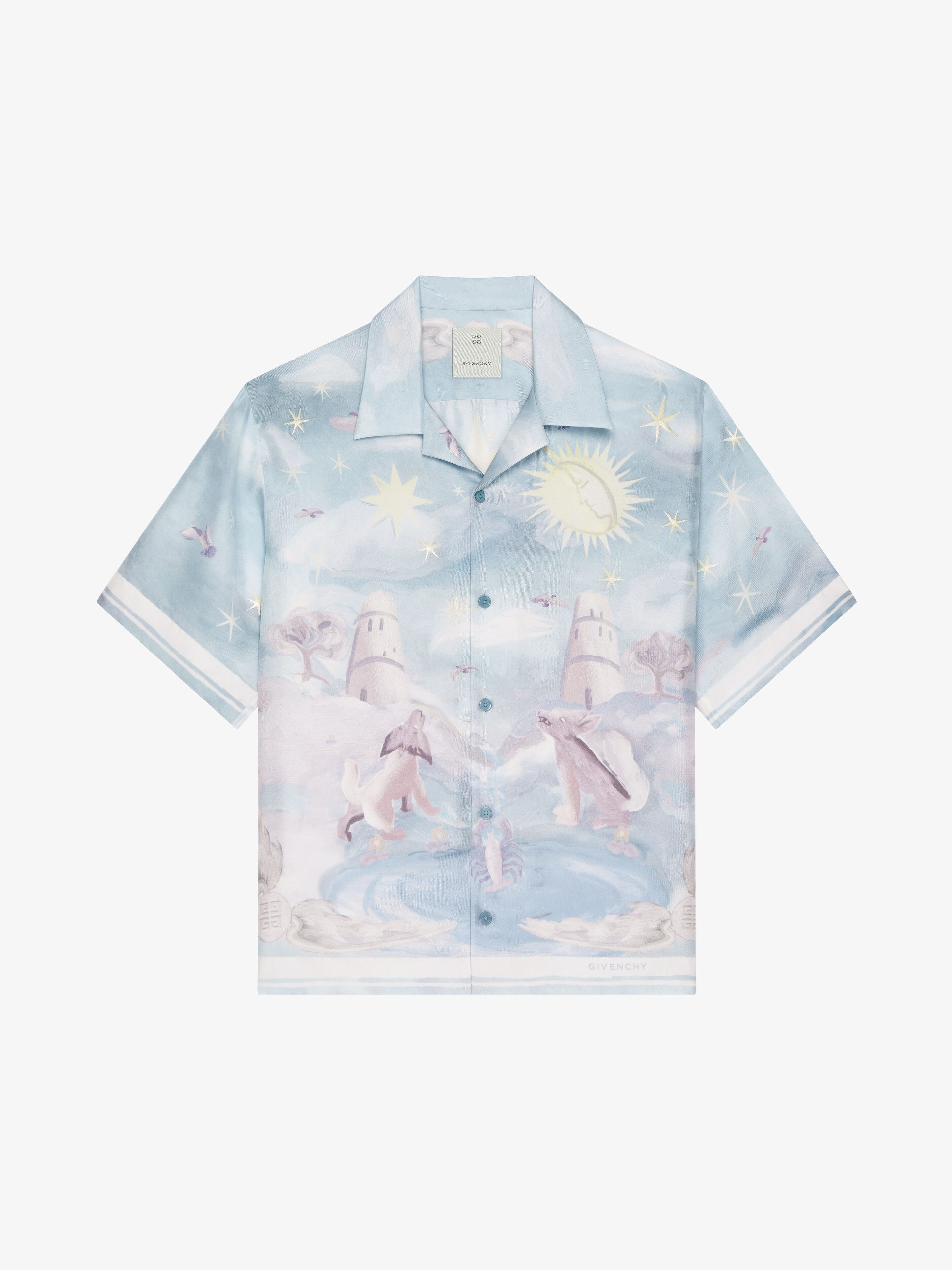 - Short-sleeved shirt in silk twill. - Hawaiian collar. - Tarot print. - Small GIVENCHY signature printed on the lower front. - Button closure. - Small slits on the sides. - Boxy fit. - Model measures 6.1 Feet and wears a size 39.