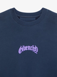 - Sweatshirt in soft fleece. - Crew neck. - GIVENCHY signature printed on the front. - GIVENCHY signature and reflective lightning artwork on the back. - Ribbed collar, hem and cuffs. - Boxy fit. - Model measures 73.2 in and wears a size M.