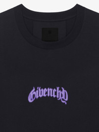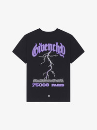 - Short-sleeved t-shirt in cotton. - Crew neck. - GIVENCHY signature printed on the front. - GIVENCHY signature and reflective lightning artwork printed on the back. - Small 4G emblem printed on the lower back. - Boxy fit. - Model measures 73.2 in and wears a size M.