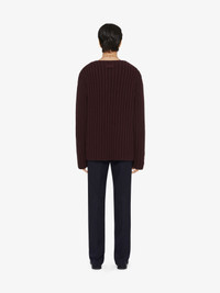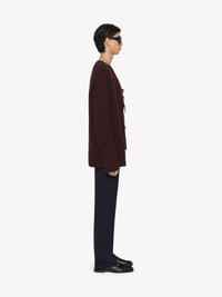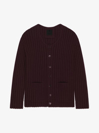 - Long-sleeved cardigan in cashmere knit. - Crew neck. - Small GIVENCHY signature embroidered on the upper back. - Button closure. - Two front pockets. - Model measures 6.1 Feet and wears a size M.