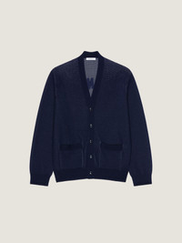 - Long-sleeved cardigan in cotton. - V neck. - GIVENCHY Paris chainstitch embroidery on the back. - Button closure. - Two front pockets. - Ribbed hem and cuffs.