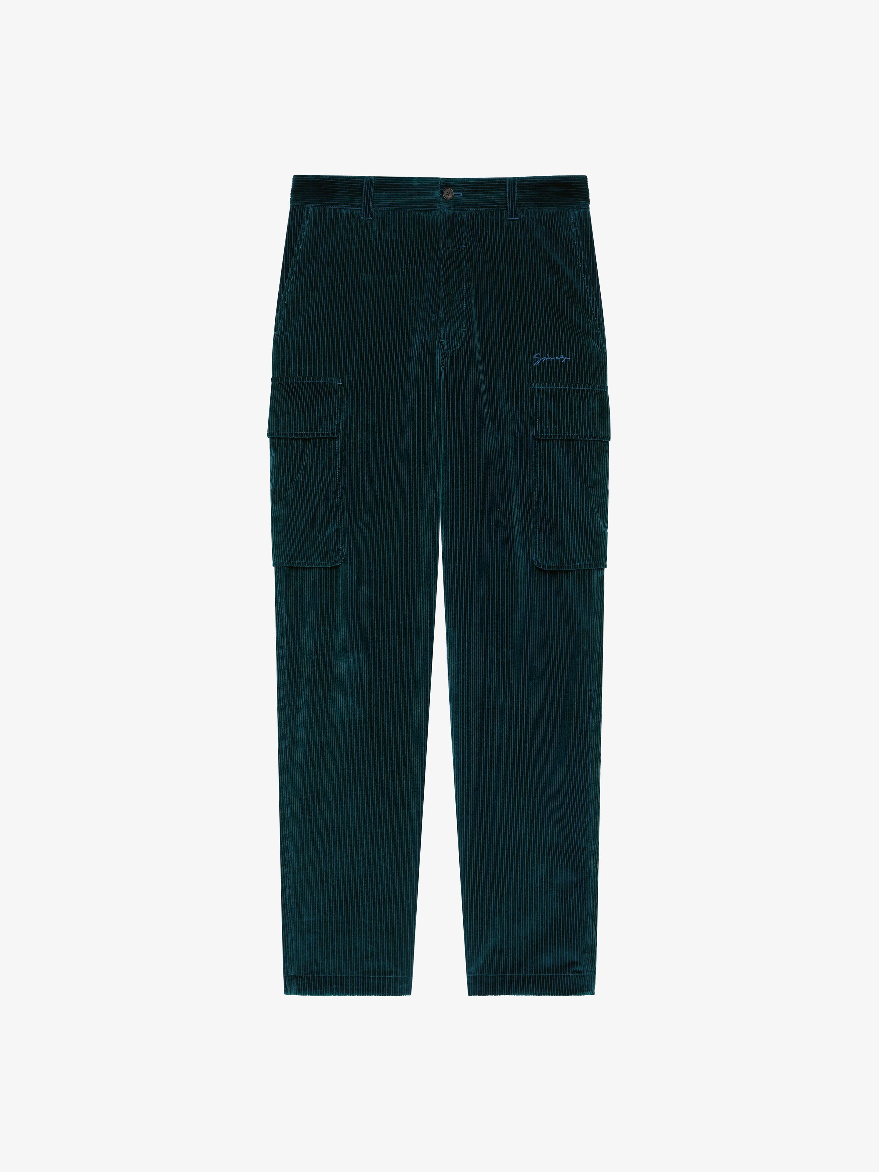 - Cargo pants in changeant corduroy. - Button and zipped closure. - Small GIVENCHY signature embroidered on the left leg, on the front. - Two front pockets. - Two flap pockets on the front. - Two back pockets. - Model measures 6.1 Feet and wears a size 48.