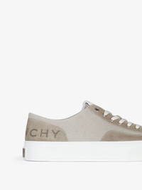 - Low sneakers in canvas and suede leather. - City line. - Silvery-finish metal eyelets with GIVENCHY engraving. - Grained leather insert on the front. - 4G emblem debossed on the tongue. - GIVENCHY signature debossed on the back. - GIVENCHY metal plate on the back of the outsole. - GIVENCHY 4G signature debossed on the leather insole.