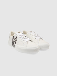 Low top sneakers. Round leather toe box. Leather tongue. Front lacing. Smooth leather side panels, and heel counter. Printed logos on the side panels. Padded leather collar. Leather logo tab at the heel with a stamped logo. Rubber midsole. Rubber outsole. - Leather upper SKU: BH005VH1CA116-WHTXBLK