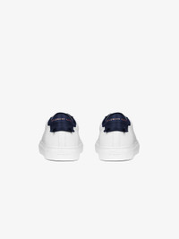 Low-top lace-up sneakers in matte white leather, with navy blue leather inset and knots on the back. Product code: BM08219876-131 Composition : 100% Calfskin leather. Size & Fit Fits large to size. Take one size smaller than normal Other Country of origin: Portugal