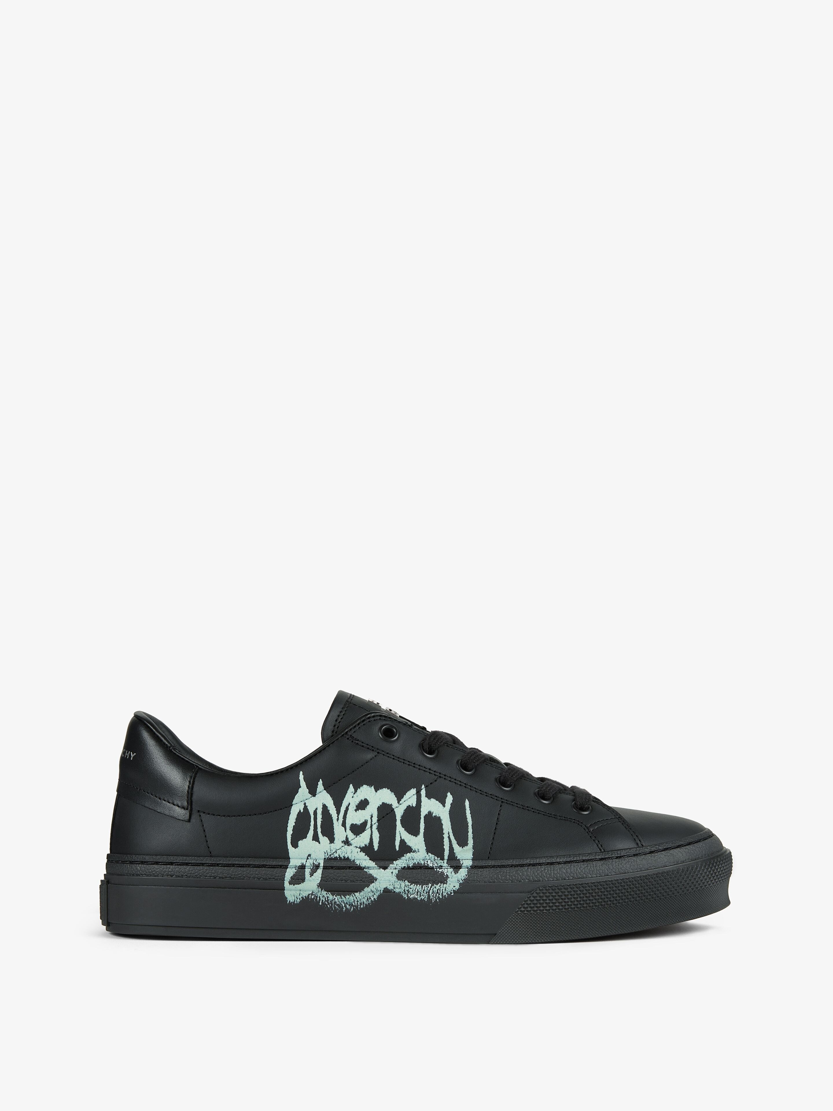 - Lace-up sneakers in calfskin leather. - City Sport line. - Chito x Givenchy collaboration. - GIVENCHY Infinity with spray effect printed on the side. - Silvery-finish metal 4G piece on the tongue. - Leather insert on the back with contrasting GIVENCHY signature. - 4G emblem debossed at the back of the sole. - GIVENCHY 4G signature debossed on the leather insole. - Comfortable.