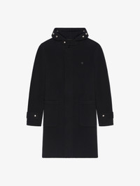 - Coat in double face wool and cashmere. - Hood with button details. - Tone-on-tone 4G piece on the chest. - Hidden zipped closure. - Two big front pockets. - Buttoned cuffs. - Classic fit.