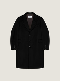 - Coat in wool and cashmere. - Notch lapel. - Gros grain detail on the neckline, on the inside. - Button closure. - Buttoned cuffs. - One chest pocket. - Two front flap pockets. - Satin lining. - Bias seams for a cocooning volume. - Relaxed fit. - Model measures 6.1 Feet and wears a size 48.