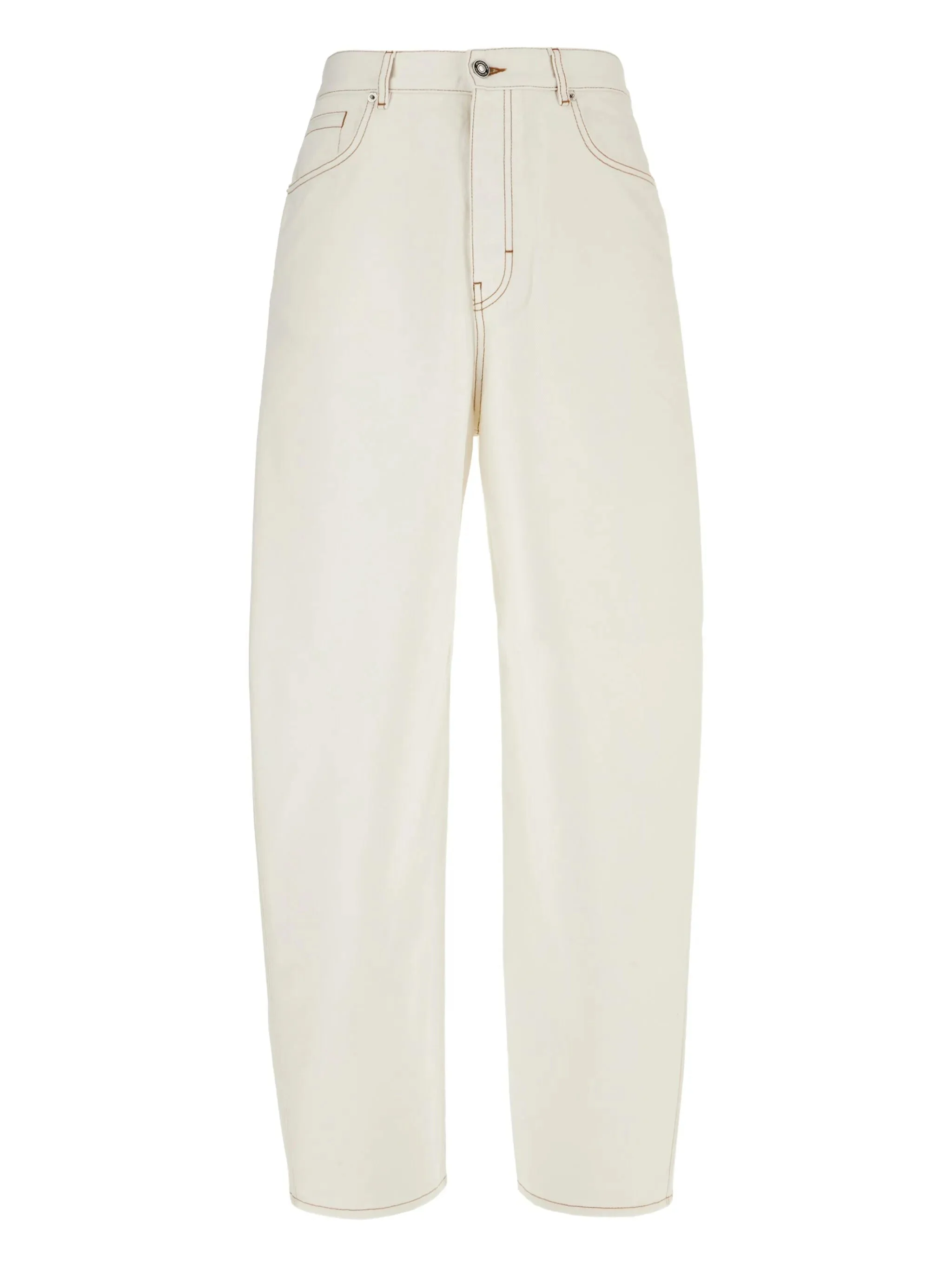 - white - contrast stitching - button fly - five-pocket styling Materials & Product Care Cotton 100%