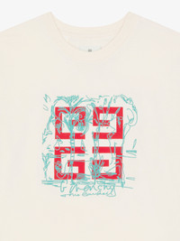 - In collaboration with Tomo Campbell, London based artist who focuses on contemporary artworks, Givenchy House presents an artistic Summer 25 capsule collection for men. Tomo reinterprets the iconic 4G, introducing a fresh color palette and a line sketch drawn from his own artwork. - Short-sleeved t-shirt in cotton. - Crew neck. - 4G emblem printed on the front. - Artwork by Tomo embroidered on the front. - Small GIVENCHY signature embroidered on the sleeve. - Classic fit. - Model measures 6.1 Feet and wears a size M.