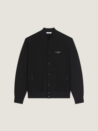 - Cardigan in fleece. - Bomber collar. - Small GIVENCHY Paris signature embroidered on the chest. - Snap button closure. - Two side pockets. - Elasticated knitted collar, hem and cuffs. - Couture seams for a rounded proportion. - Relaxed fit.