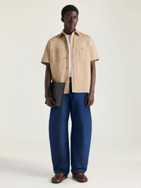- Short-sleeved shirt in cotton twill. - Classic collar. - GIVENCHY Paris patch in self-fabric on the chest. - Button closure. - Two chest pockets. - Couture seams. - Relaxed fit. - Model measures 6.1 Feet and wears a size M.