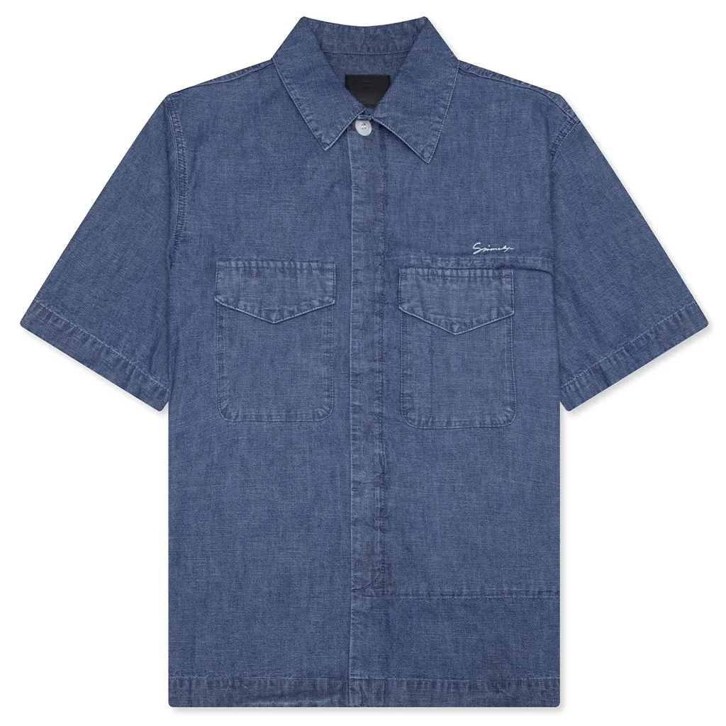 LOGO EMBROIDERED SHORT-SLEEVE SHIRT - DENIM BLUE