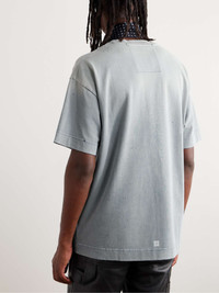 Givenchy channels rebellious, rock 'n' roll energy under Matthew Williams' creative direction. This distressed and faded cotton-jersey T-shirt could very well be a piece of band merch, thanks to the Gothic-typeface logos that sit mirrored across the chest. Size & Fit - Model wears a size larger to achieve a looser fit - Mid-weight, slightly stretchy fabric - Model is shown wearing a M - Model measures: chest 36"/ 92cm, height 6'0"/ 183cm Details & Care - Light-blue and white cotton-jersey - 100% cotton - Machine wash - Designer colour: Military Blue