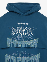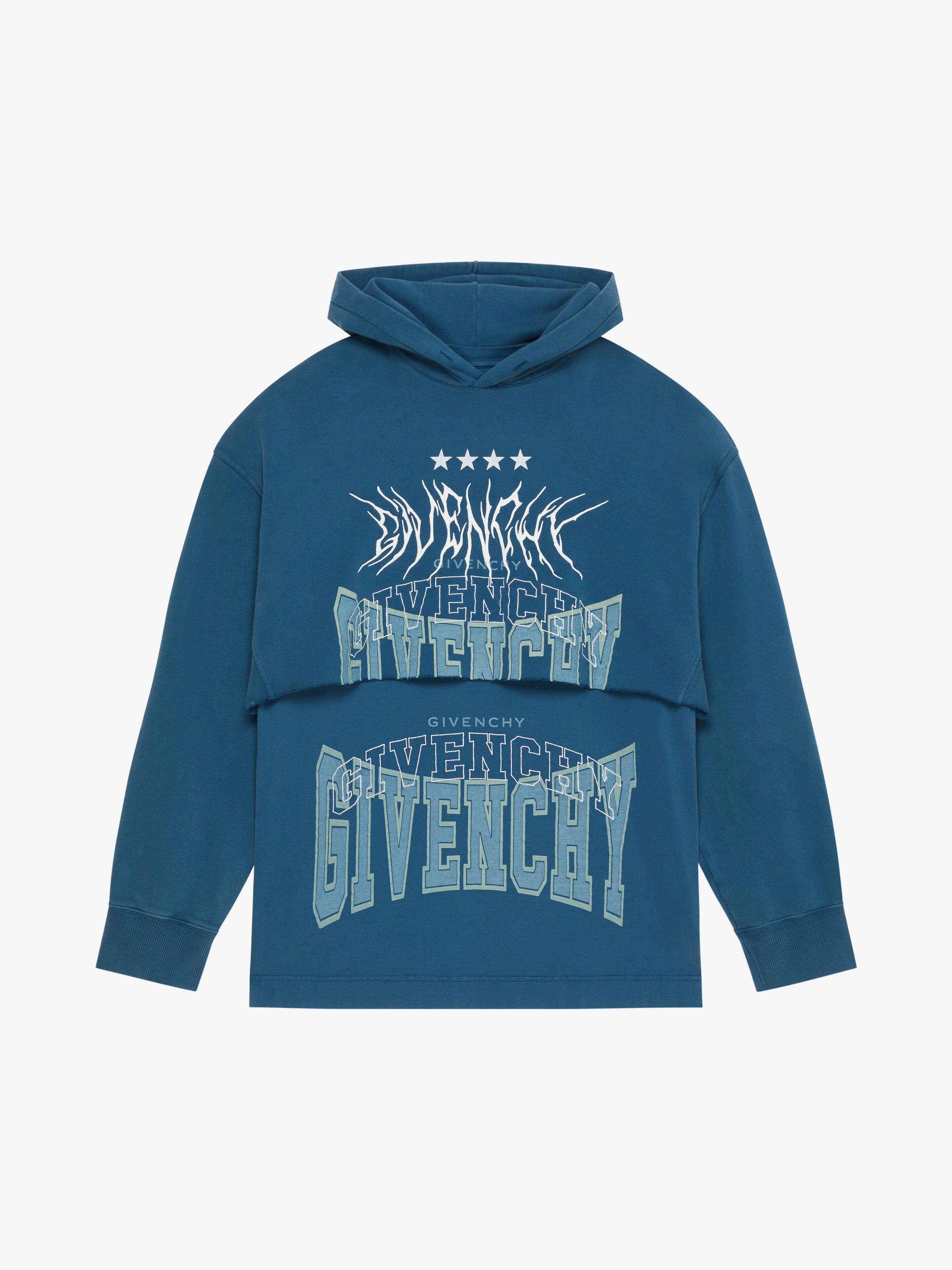 - Hooded sweatshirt in jersey and soft felpa. - Overlay effect. - Heat-bonded stars and mix of printed and embroidered GIVENCHY signatures on the front. - Mix of printed and embroidered GIVENCHY signature on the back, on the upper layer. - Ribbed cuffs. - Classic fit.