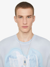 - Long necklace in silvery-finish metal with double tag. - Chito x Givenchy collaboration. - Chito x Givenchy collaboration. - Metal plate pendant with 4G emblem all-over. - Smaller metal plate pendant with GIVENCHY signature and artwork. - 4G metal emblems on each part of the chain. - Adjustment chain.