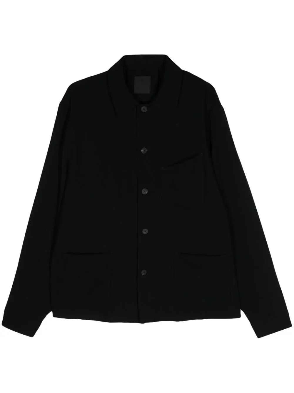 BLACK WOOL BLEND CLASSIC COLLAR LONG SLEEVES WITH BUTTONED CUFFS CHEST PATCH POCKET TWO FRONT PATCH POCKETS STRAIGHT HEM FRONT BUTTON FASTENING