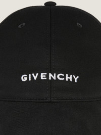 - Cap in cotton twill with embroidered GIVENCHY signature. - Curved brim. - 4G emblem embroidered on the back. - Tab with GIVENCHY-engraved metal buckle on the back.