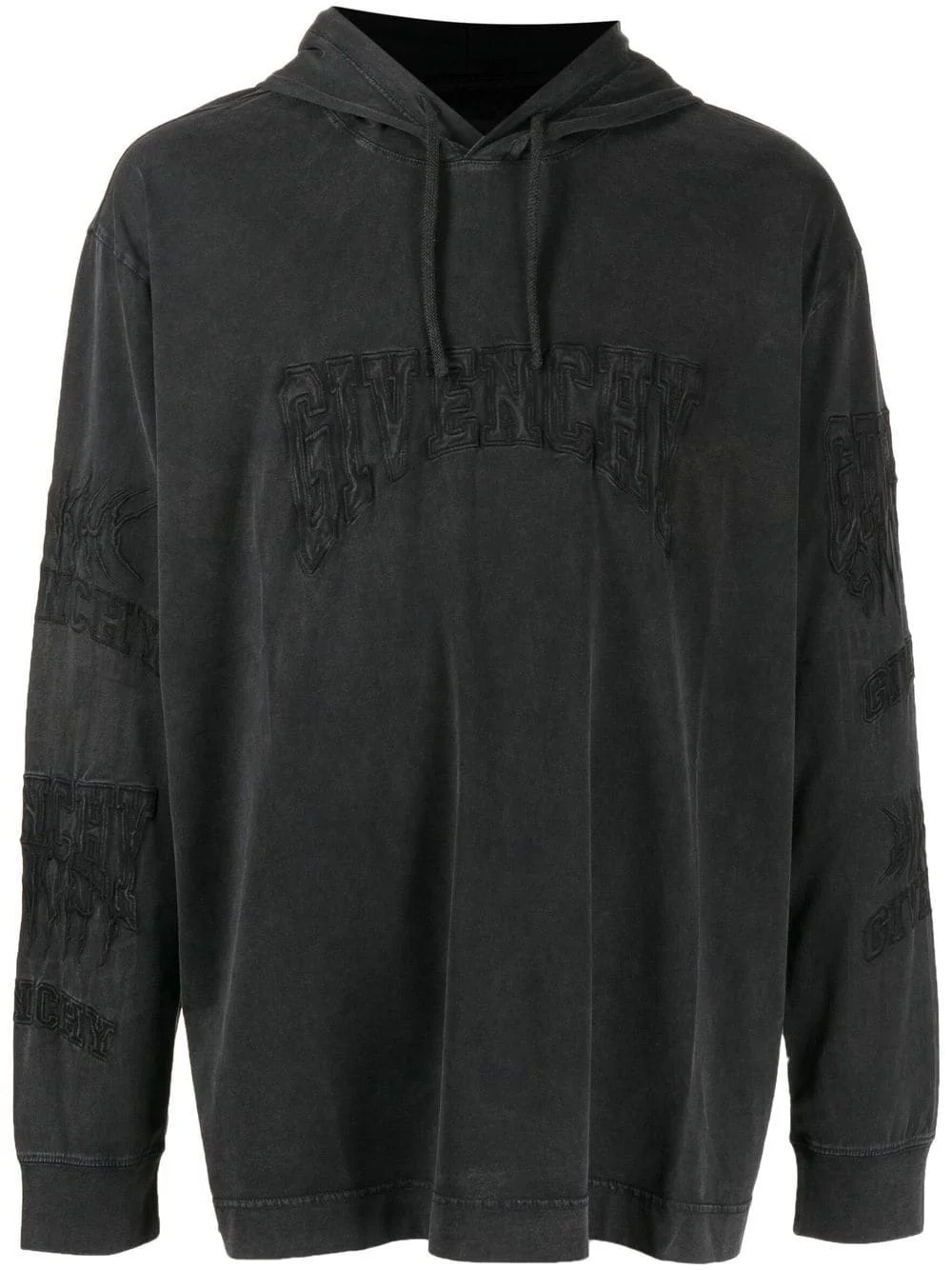 embroidered logo faded-effect hoodie black cotton faded effect embroidered logo to the front embroidered logo at the sleeve drawstring hood long sleeves straight hem Imported Composition Cotton 100% SIZE & FIT Model measurements Height 6 ft 3 in(1.9 m) Bust/Chest 34.64 in(88 cm) Hips 36.61 in(93 cm) Waist 27.55 in(70 cm) FittingInformation This piece fits true to size. We recommend you get your regular size Cut for a loose fit Made with a mid-weight fabric Washing instructions Machine Wash