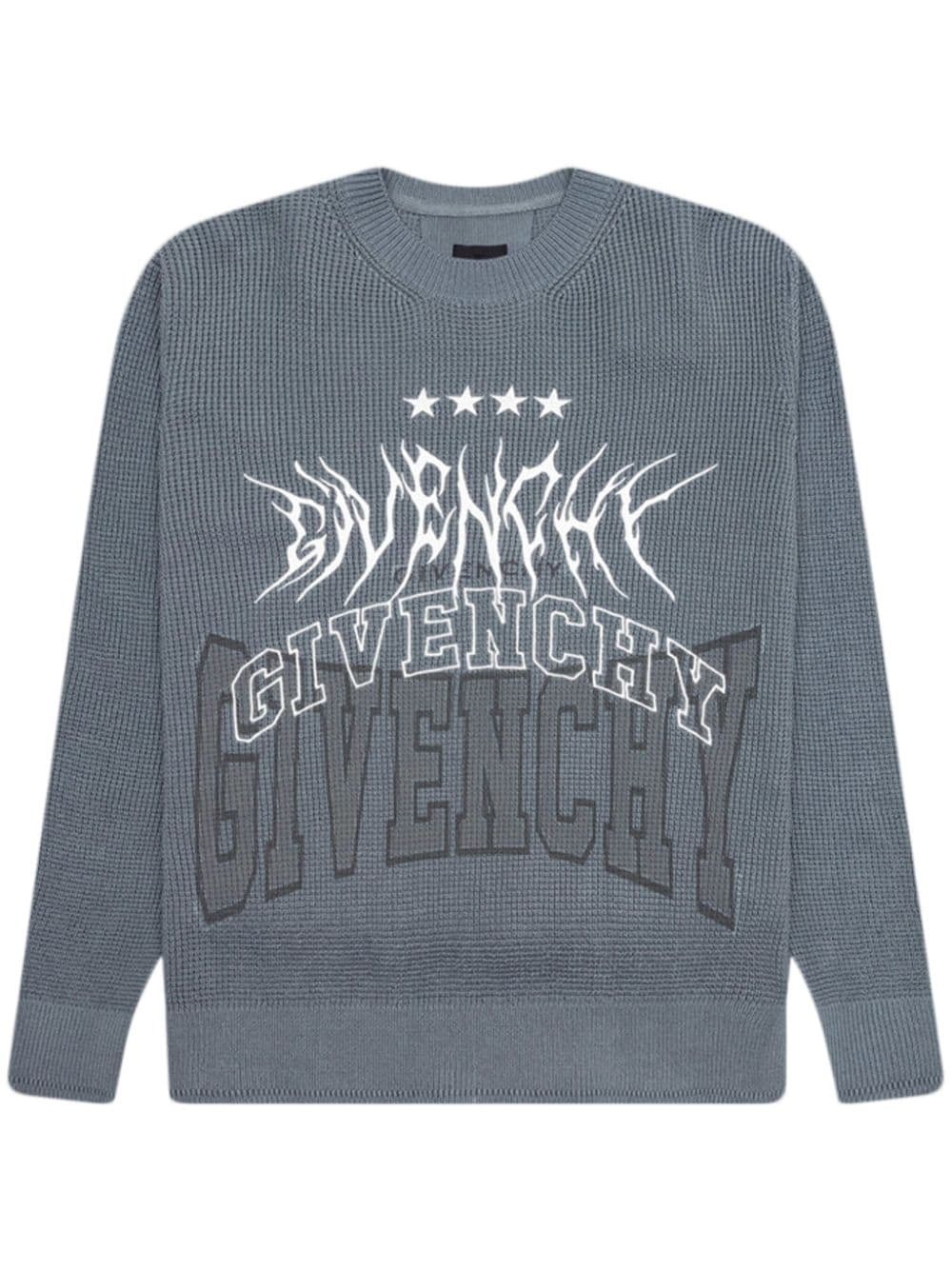 logo-embroidered waffle-knit jumper