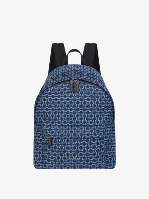 - Backpack in monogram 72 denim. - Essential U line. - Zipper closure with double leather zipper pull. - Contrasting GIVENCHY signature embroidered on the top. - Comfortable adjustable padded straps. - One zippered pocket with metal GIVENCHY signature on the front. - One flat pocket inside.
