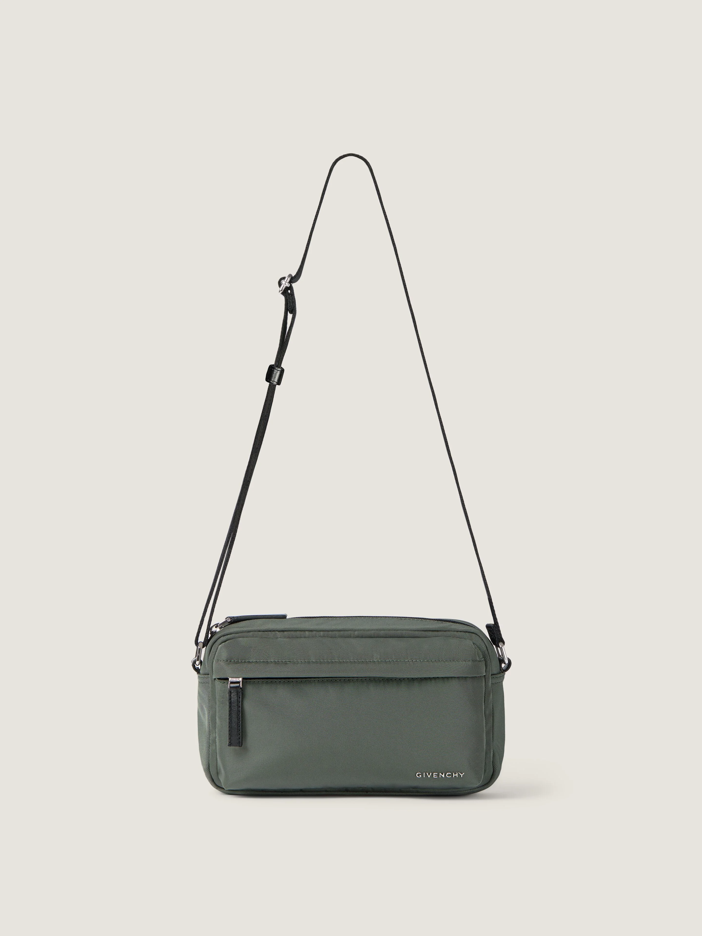 - Bag in nylon. - Essential U line. - Zipper closure with leather zipper pull. - Adjustable GIVENCHY webbing strap for a crossbody carry. - Metal GIVENCHY signature on the front. - GIVENCHY Paris patch on the inside. - Silvery-finish metal details. - One main zipped compartment. - Two zipped pockets on the front. - One flat pocket on the back.