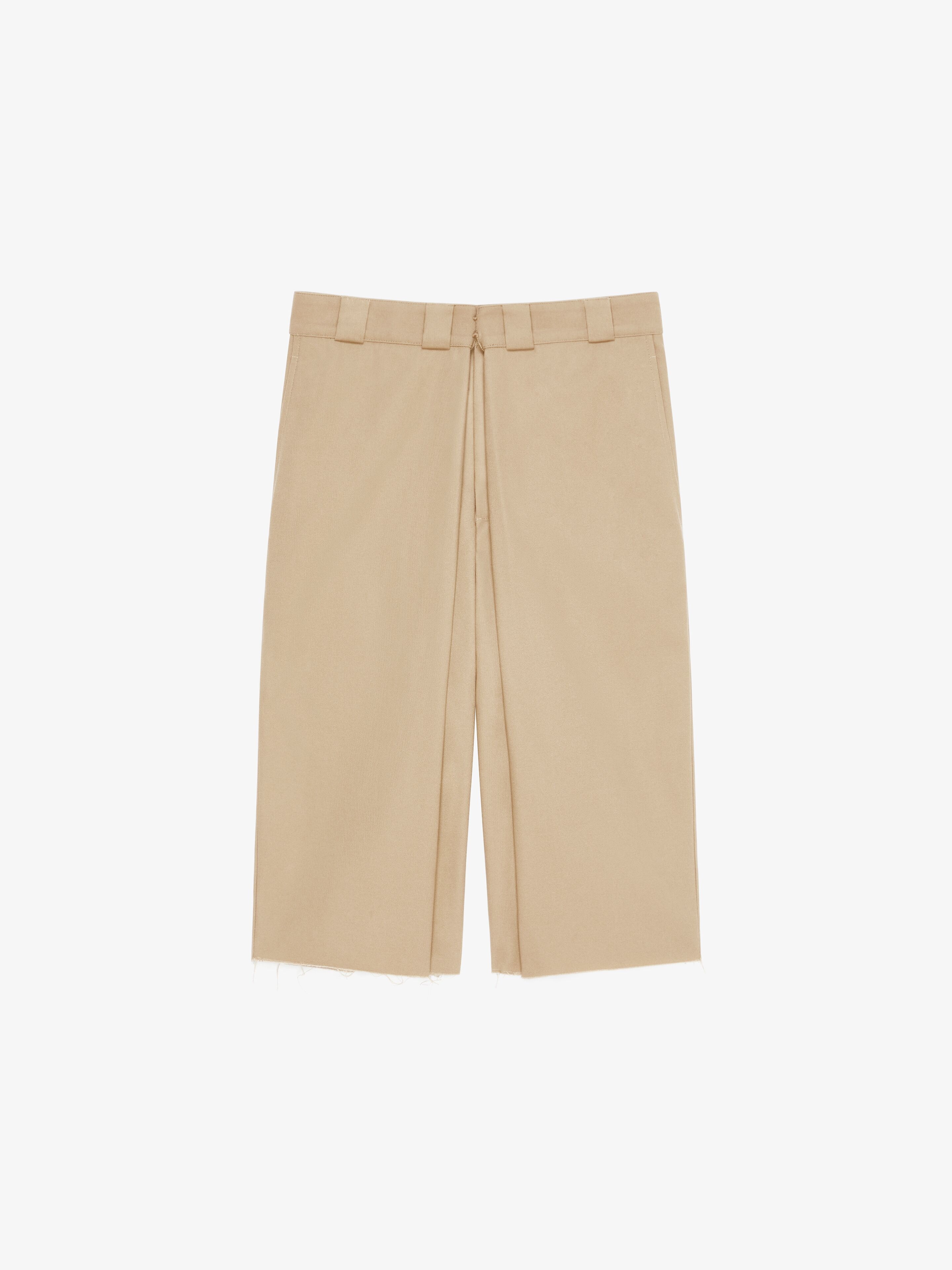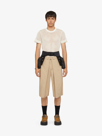 - Long bermuda shorts in canvas. - Waist with loops and zipped closure. - Overlapped system at the waist to adjust the fit. - Two side pockets. - Two back pockets. - One pocket on the back with GIVENCHY label. - Raw bottom. - Extra wide fit. - Model measures 6.1 Feet and wears a size 48.