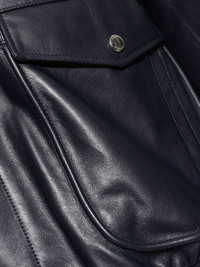 flap-pocket leather jacket Highlights - Black - Front flap pockets - Ribbed hem - Front zip fastening - Classic collar Made in Italy Composition Outer: Calf Leather 100% Lining: Viscose 100% SIZE & FIT Measurement CHEST 36.22 in(92 cm) WAIST 29.13 in(74 cm) Washing instructions Read Manufacturer Guidelines