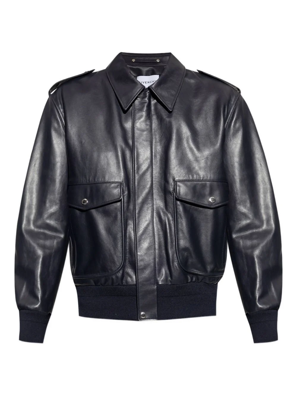 flap-pocket leather jacket