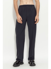 elasticated-waist straight-leg trousers Highlights - Blue - Wool blend - Elasticated waistband - Pressed crease - Two side inset pockets - Two rear welt pockets - Straight leg Made in Italy Composition Wool 58%, Polyamide 38%, Elastane 4% Washing instructions Read Manufacturer Guidelines