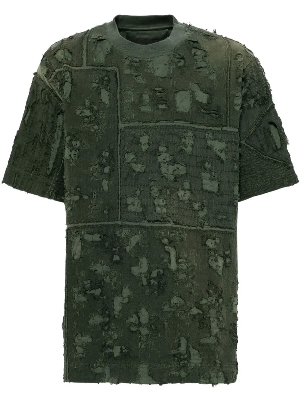 frayed-effect T-shirt Highlights - Dark green - Cotton - Jersey texture - Frayed detailing - Crew neck - Drop shoulder - Short sleeves - Straight hem Imported Composition Cotton 100% SIZE & FIT Model measurements Height 6 ft 1 in(1.85 m) Bust/Chest 35.43 in(90 cm) Hips 36.22 in(92 cm) Waist 28.74 in(73 cm) FittingInformation Designed for an oversized fit, offering additional room throughout Made from a midweight non-stretch fabric This piece fits close in all sizes – take your usual size