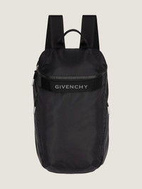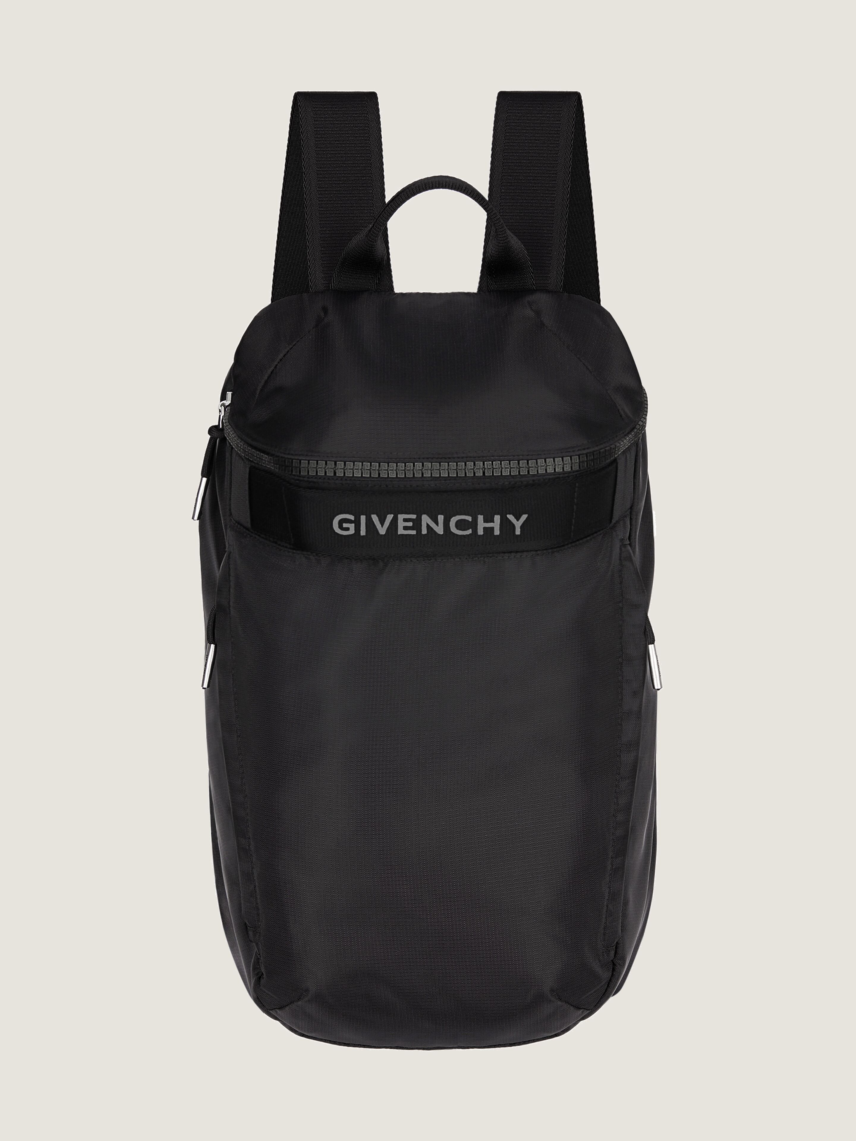 - Backpack in nylon with an all-around 4G plastic zip to keep your belongings close and safe. - G-Trek line. - Adjustable webbing straps with reflective GIVENCHY signature. - Webbing band with reflective GIVENCHY signature on the front. - Two zipped pockets on the sides. - One main compartment and one inside reinforced pocket fitting a computer.