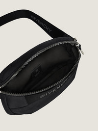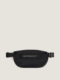 - Bumbag in nylon with an all-around 4G plastic zip to keep all your belongings close and safe. - G-Trek line. - Adjustable strap for a crossbody or belt carry. - Webbing band with reflective GIVENCHY signature on the front. - 4G zipper closure with GIVENCHY textile metal zipper pull. - One main zipped compartment.