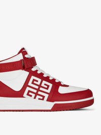 - High-top sneakers in smooth calfskin and tumbled leather. - G4 line. - Removable GIVENCHY webbing strap around the ankle. - 4G contrasted embossed emblem on the side. - Embossed GIVENCHY 4G on the tongue. - Small 4G emblem embossed on the front. - 4G emblem and GIVENCHY signature on the outsole. - Calfskin leather insole with GIVENCHY 4G signature. - Sole injected on the upper without glue and dying technique to reduce the use of water and chemicals.