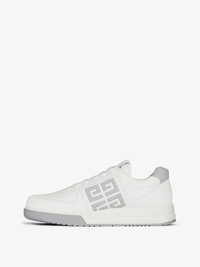 - Low-top laced-up sneakers in calfskin leather. - G4 line. - Debossed contrasted 4G emblem on the side. - GIVENCHY signature and 4G emblem on the tongue. - Grained calfskin leather inset on the back. - Insole with GIVENCHY signature. - 4G design and GIVENCHY signature on outsole. - More environmentally friendly materials and manufacturing processes: glue-free construction, reduced water and chemical use, recycled polyester lining, organic cotton laces.