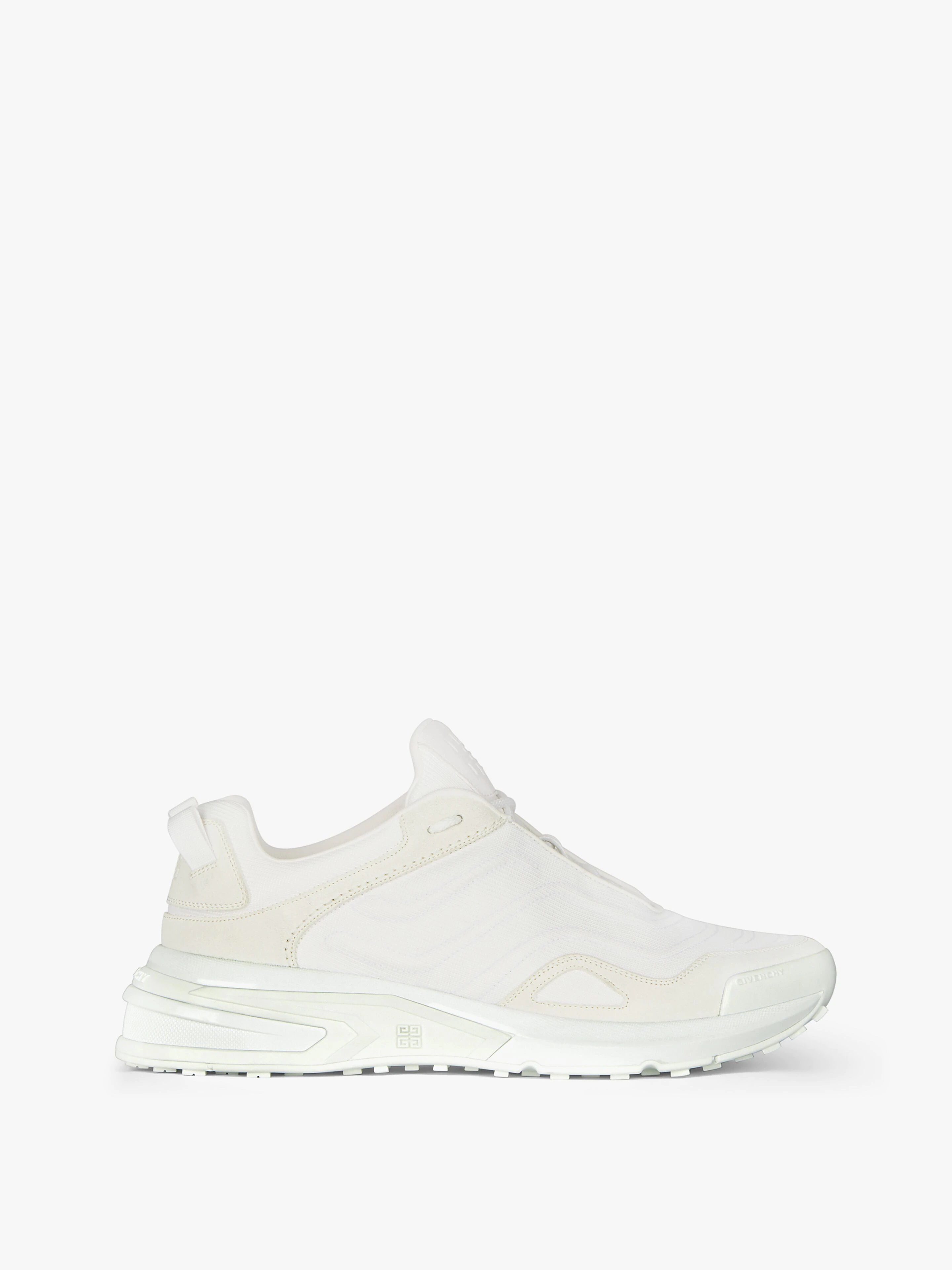 - Sneakers in textured technical canvas. - Color: white. - Aerodynamic design. - Suede details. - Graphic crossed lacing. - Small tone-on-tone tabs and 4G emblems debossed on the back. - Suede inset with debossed 4G emblem on the tongue. - 4G emblem and raised GIVENCHY signature on the sole. - All-over 4G emblems on the sole.