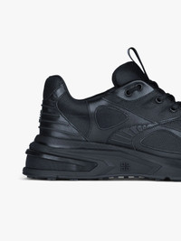 - Sneakers in mesh and leather. - Color: black. - Aerodynamic design. - Graphic details in suede and rubber. - GIVENCHY tab on the lacing. - Rubber 4G emblems on the top and back. - 4G emblem and raised GIVENCHY signature on the sole. - All-over 4G emblems on the sole.