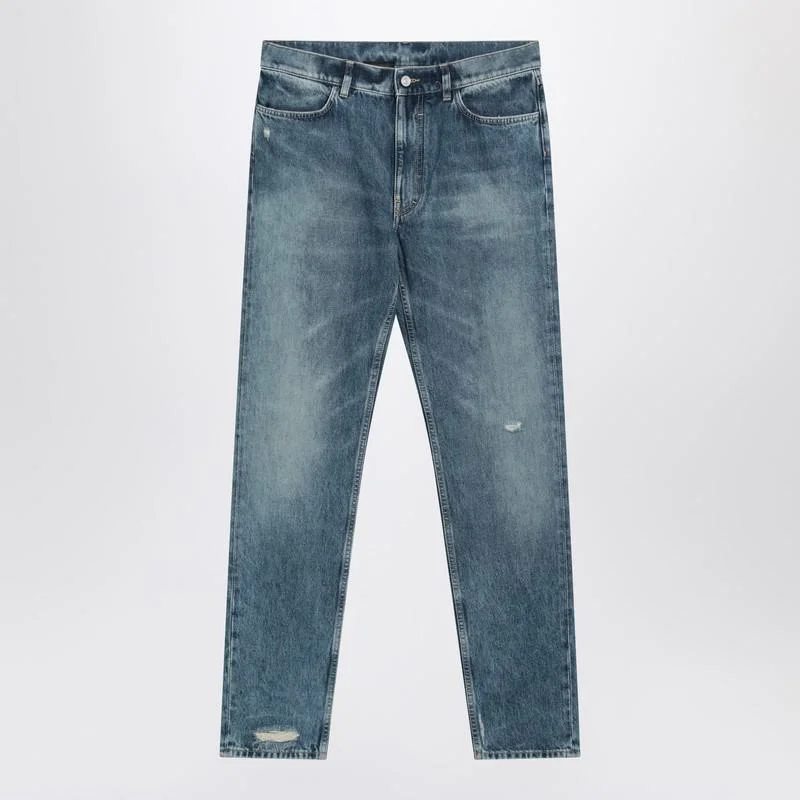 Givenchy jeans in faded blue cotton denim, featuring a front zip and button closure, belt loops, two front pockets, two back pockets, embroidered logo lettering on the back, and localized wear. Gender: Men Material: Fabric I: 100% Cotton / Pocket lining: 65% Polyester - 35% Cotton Color: BLUE Made in: IT Product ID: BM51HB5YB6/Q_GIV-426 *Import tax/duty will be calculated at checkout (If applicable)