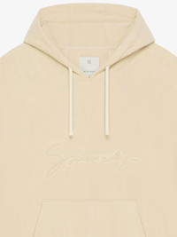 - Long-sleeved hooded sweatshirt in velvet. - GIVENCHY signature embossed on the front. - Drawstring on the hood. - One kangaroo pocket on the front. - Classic fit. - Model measures 6.1 Feet and wears a size M.