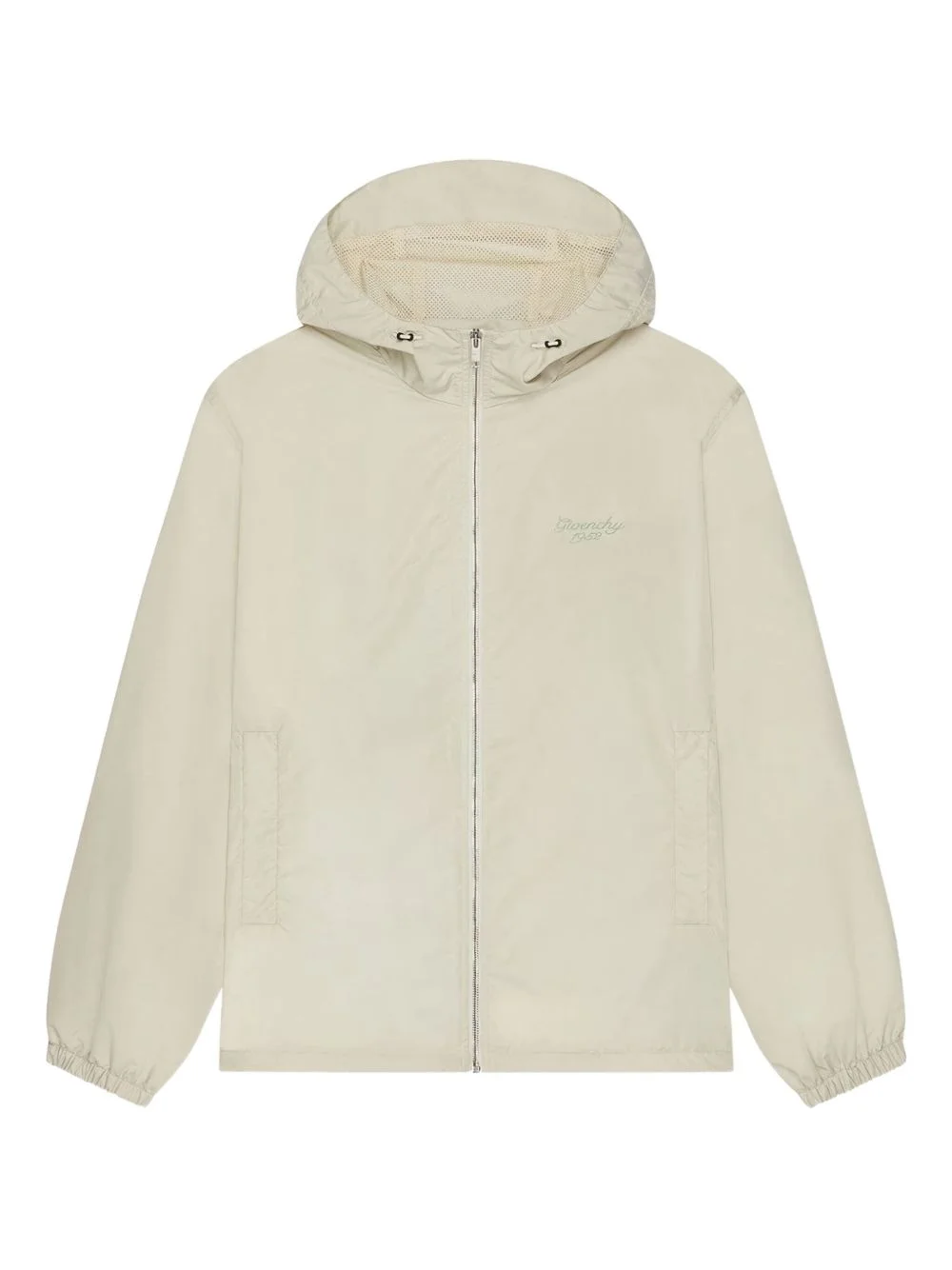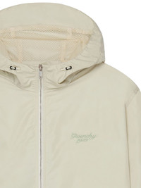 hooded zip windbreaker Highlights - Ivory white - Hooded - Zip fastening - Elasticated cuffs - Front pockets Made in Italy Composition Outer: Polyester 63%, Recycled Polyester 37% Lining: Mesh 100% Washing instructions Read Manufacturer Guidelines