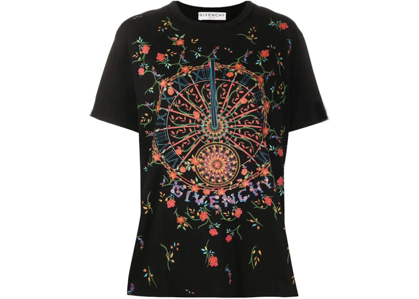 Givenchy Ladies Floral Clock Design T-shirt Black