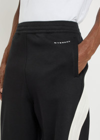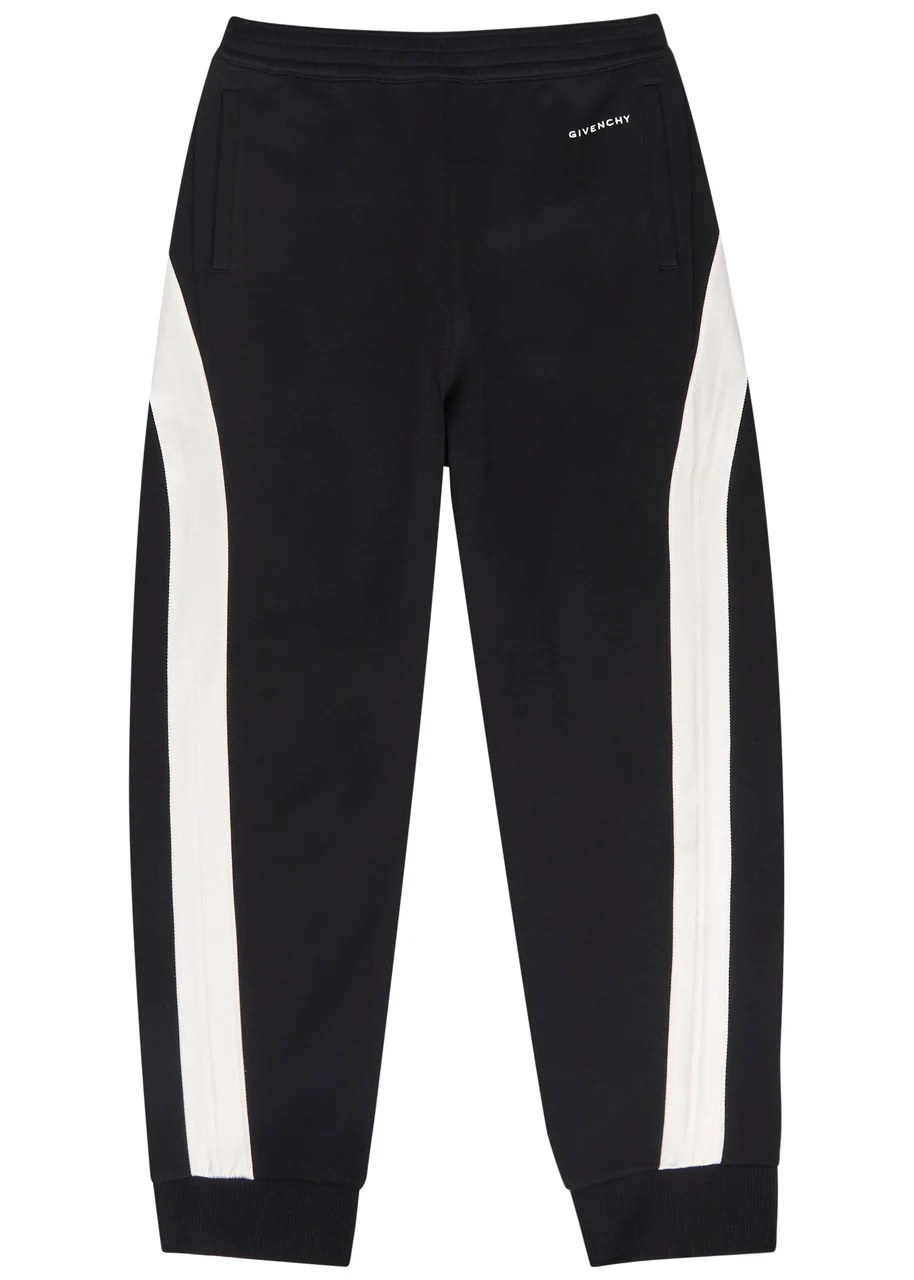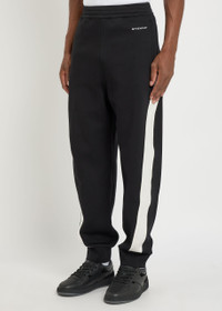 Info & Care Givenchy cotton-blend sweatpants Concealed drawstring waist, satin panel through legs,;side slip pockets, embroidered logo, ribbed cuffs Pull on 86% cotton, 14% polyester Dry clean Coordinating item available Size & Fit Inside leg length: 30 inches/ 76cm Midweight Tapered-leg cut Model is 6'1"/ 185cm and wears a size medium