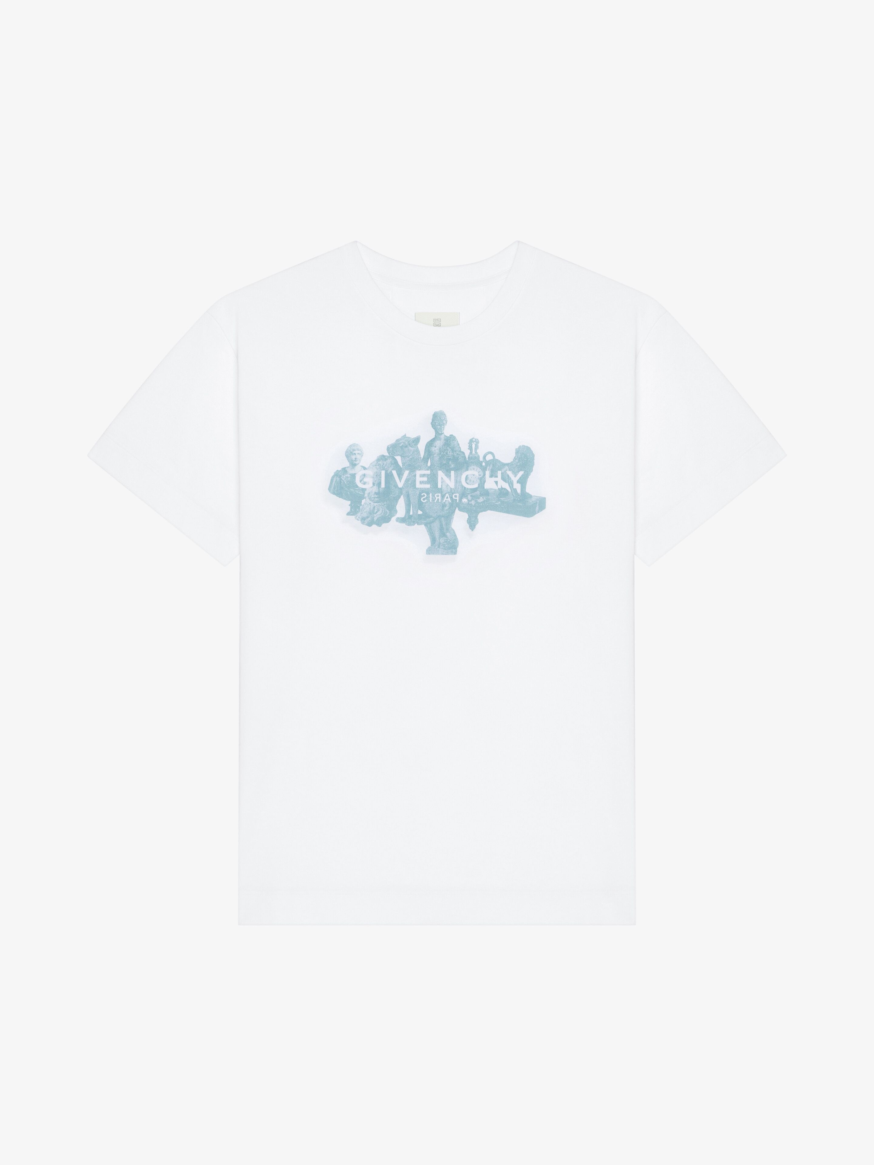 - Short-sleeved t-shirt in cotton. - Crew neck. - Reverse-effect GIVENCHY Paris signature printed on the front. - Hubert objets print on the front. - Classic fit. - Model measures 6.1 Feet and wears a size M.