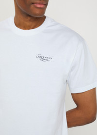 Info & Care Givenchy cotton T-shirt Logo print at chest and back, ribbed crew-neck Slips on 100% cotton Machine wash Size & Fit Length shoulder to hem: 27.5 inches/ 69.5cm Midweight Regular fit Model is 6'2"/ 188cm, chest size 38 inches and wears a size medium