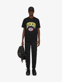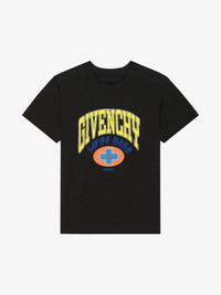 - Jersey T-shirt with GIVENCHY College and BSTROY patches embroidered on the front. - BSTROY x Givenchy collaboration. - Classic fit t-shirt with short sleeves. - Global Peace and 4G and (b). emblems printed on the back. - 4G and (b). emblems embroidered on the back.